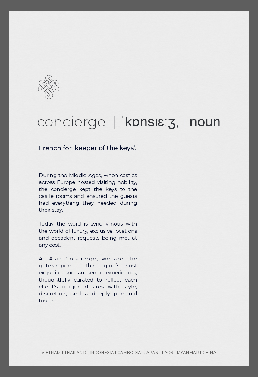 Asia Concierge has grown from its inception in 2022 to a highly successful entity today that now employs over 160 staff across eight countries. Its mission statement remains true today and its dedication to its craft now leads the way of tourism to Asia in the modern age.
