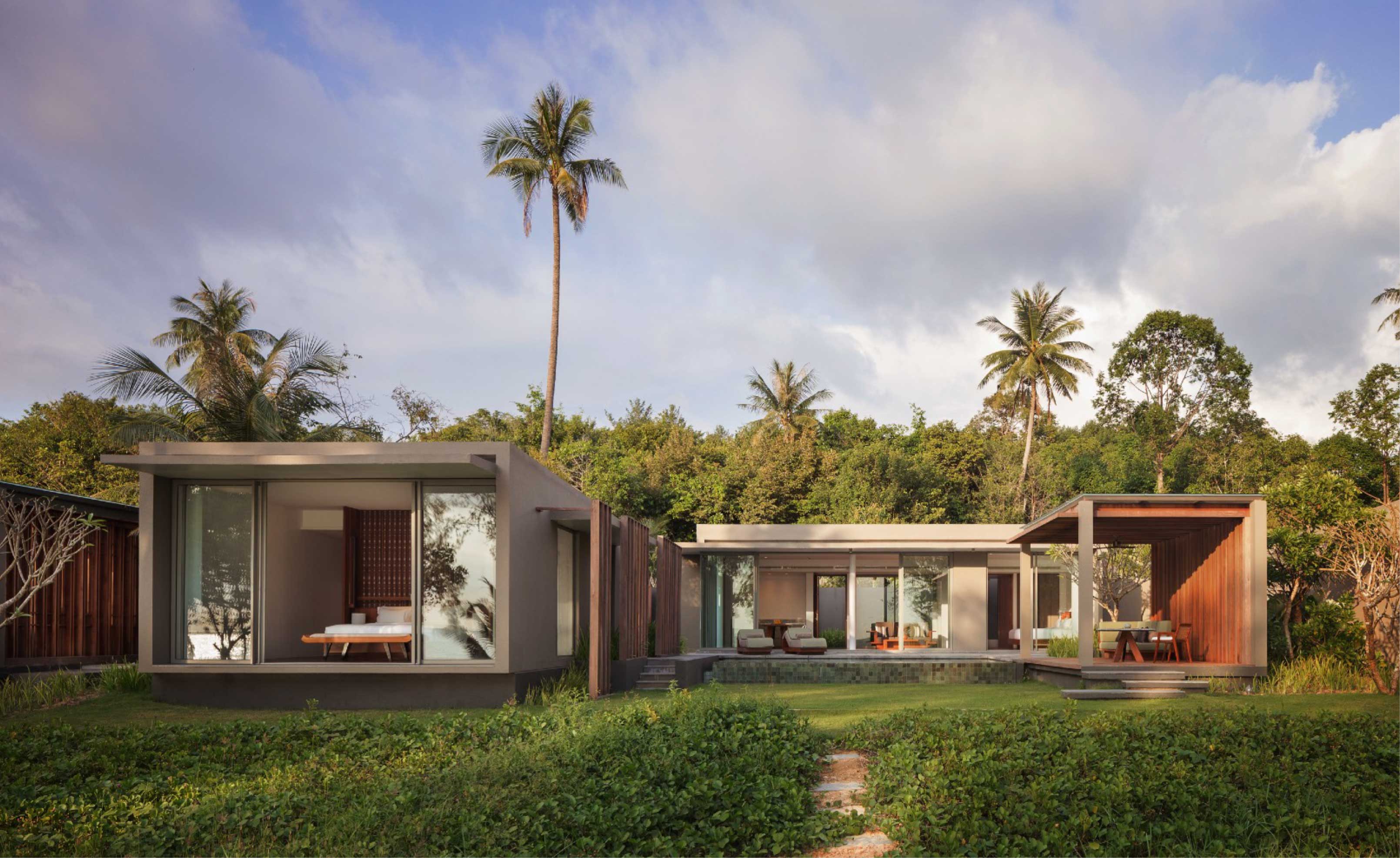 facing the open ocean.The resort design was inspired by the tradition geometry of the Cambodian Krama
