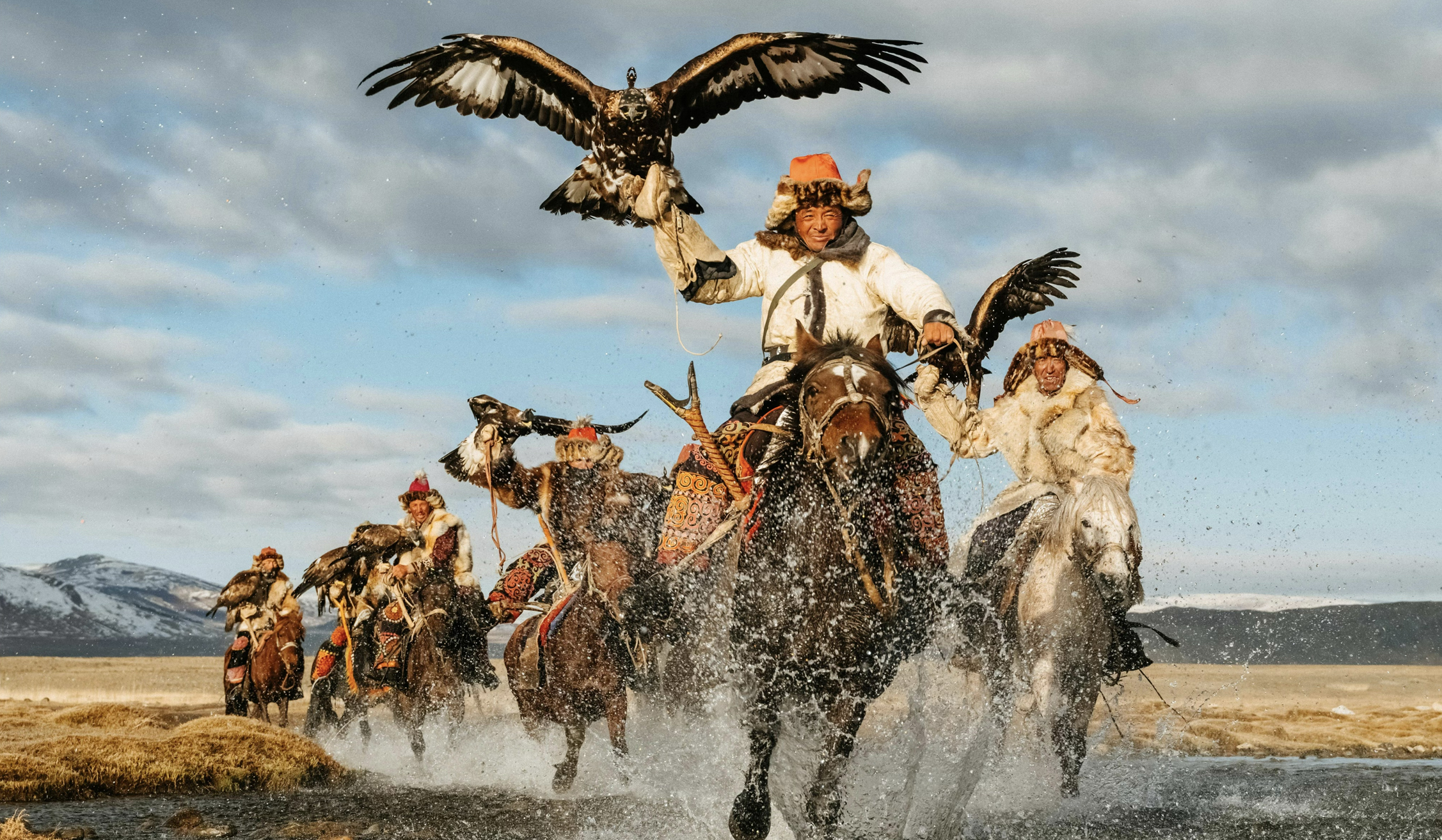 Our first full day in the Altai begins with clear light pouring into the valley and a chill that encourages quick movement. After breakfast, we step outside the ger camp as the plains slowly warm and colours settle across the landscape. This morning is devoted to one of the region’s most emblematic traditions: eagle hunting. We meet a Kazakh eagle hunter whose family has practised this craft for generations, and he welcomes us into a world shaped by skill, patience and deep respect for the natural world.