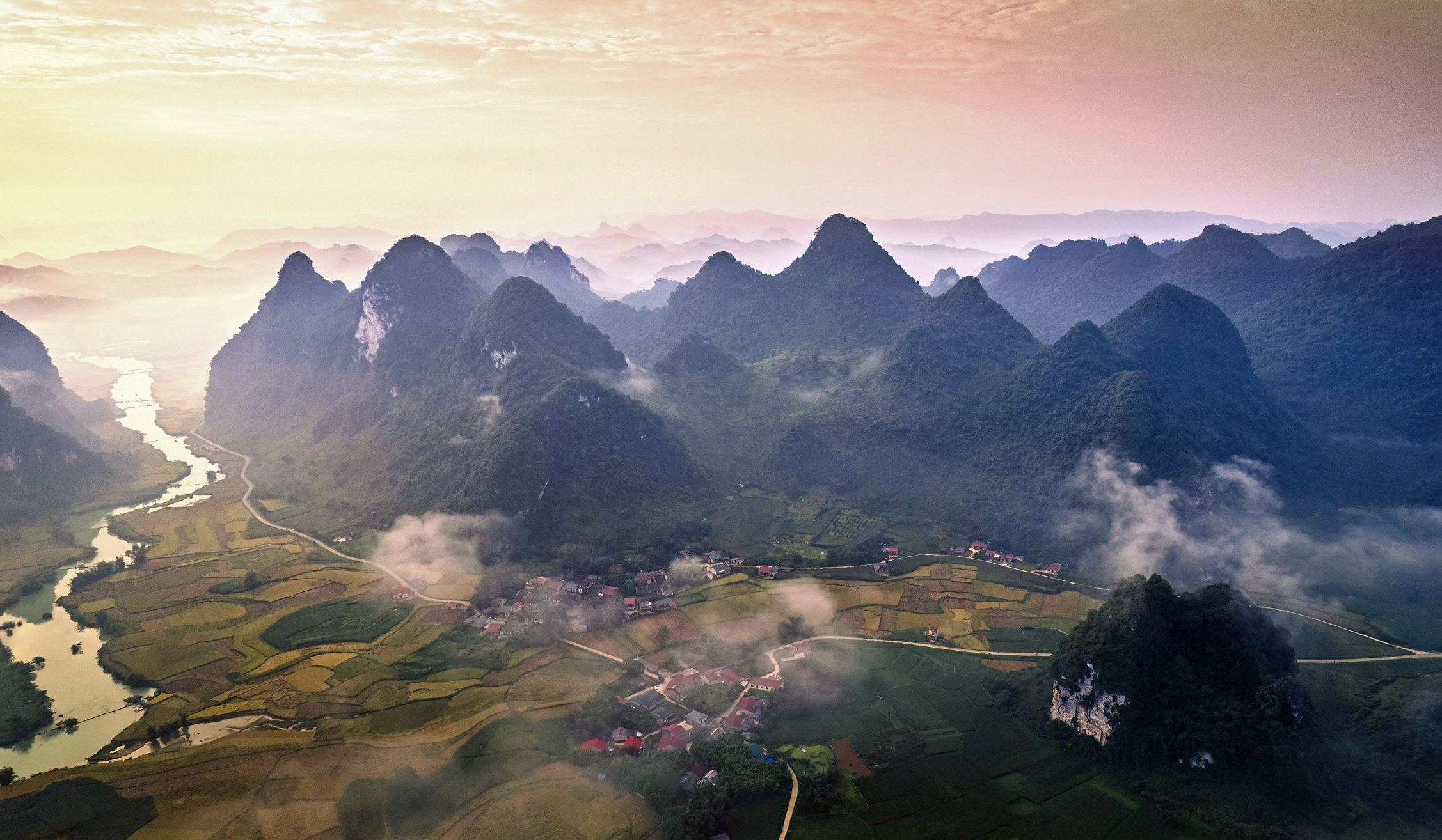Along the banks, fishermen steer narrow wooden boats, water buffalo graze in shallow pools and farmers tend vegetable plots that run down to the water. Bamboo groves form arching green corridors, and small villages appear briefly before disappearing behind the curves of the river. The scenes change gradually and gracefully, allowing time to simply watch the shapes of the mountains evolve with each bend.