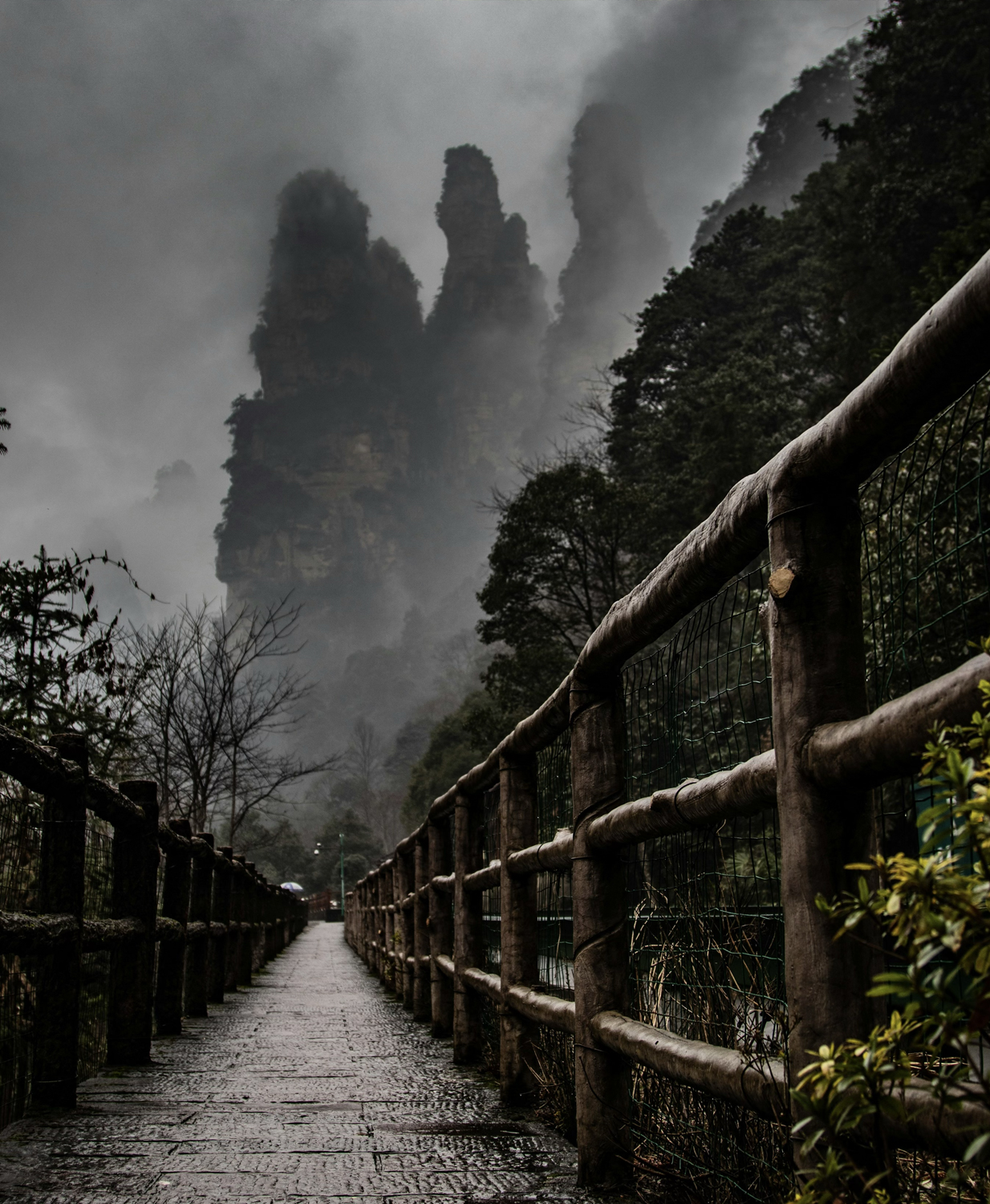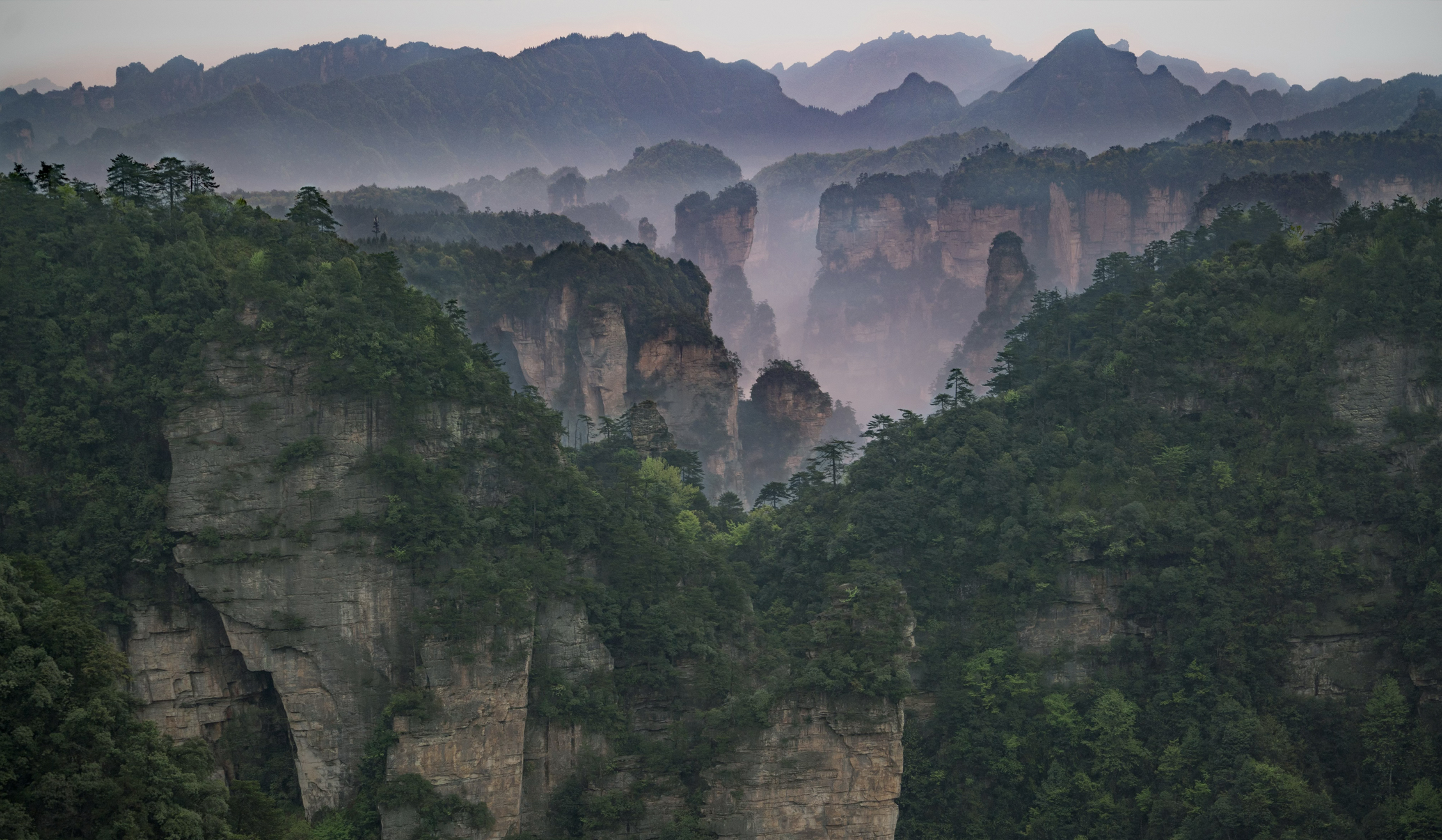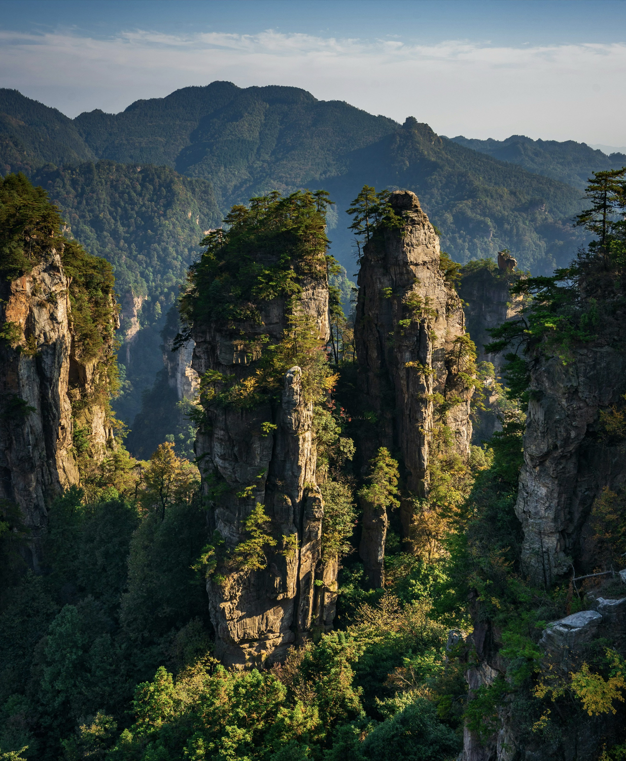 Today we enter Zhangjiajie National Forest Park, part of the UNESCO listed Wulingyuan Scenic Area. Our morning begins with the cable car ascent to Yellow Stone Village, a broad plateau offering expansive views across the region’s sandstone towers. As we rise, vertical peaks emerge from the forest in every direction, their shapes softened or sharpened depending on the light. At the summit, trails weave through pine trees to viewpoints where the landscape stretches outward in endless formations. Drifting mist often moves between the peaks, revealing and concealing clusters of pillars in a rhythm that feels almost alive.