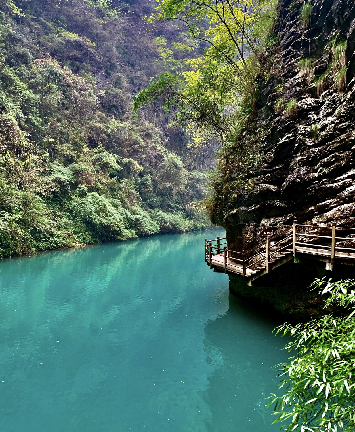 This morning we travel to Baofeng Lake, a serene body of water embraced by cliffs and thick forest. A gentle walk leads us to the pier where we board a wooden boat that glides quietly across the jade coloured surface. Sheer rock walls rise directly from the water, their reflections creating mirror like patterns that shift with each movement of the boat. Birds call from the trees and the stillness of the lake deepens the sense of entering an ancient landscape.