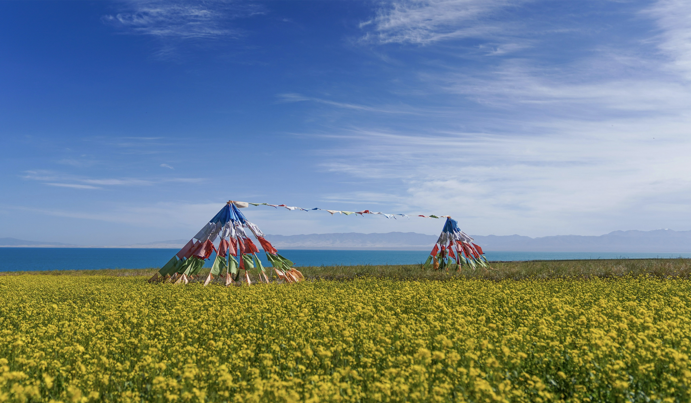 We leave Chaka Salt Lake this morning, watching the horizon fade into mist and the salt flats dissolve into grassland and sky. For a moment, it feels as though we're leaving a dream—one suspended between earth and reflection, where the world seemed doubled and the ordinary rules of distance and depth quietly fell away. The road winds through familiar terrain, though each hour brings subtle shifts — light softens, clouds gather and disperse, the air cools, and the gentle hum of Tibetan prayer flags marks the direction of the wind, fluttering like whispers of devotion sewn into the landscape.